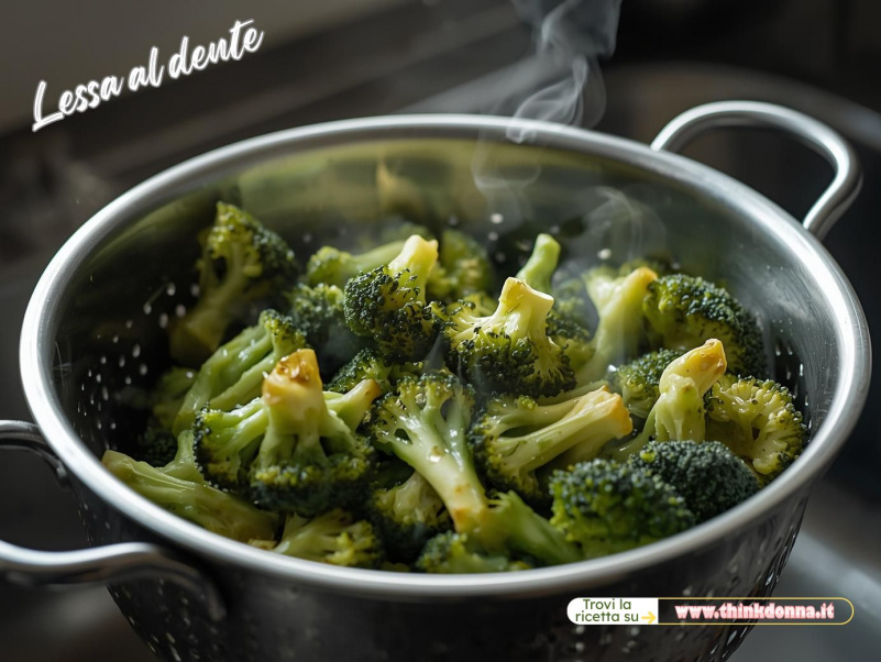 Porta a bollore una pentola con acqua leggermente salata e tuffa i broccoli per 3-4 minuti: devono essere teneri ma ancora croccanti (al dente).