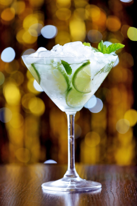 - Mettete tutto nel bicchiere da cocktail, aggiungete fettine di lime, il ghiaccio tritato al momento e l'acqua molto fredda.