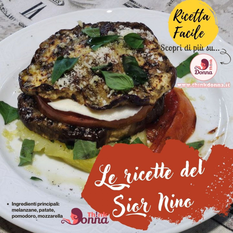 La parmigiana è un piatto classico della cucina italiana, con una sua ricetta tipica e Nino, mio marito appunto, ghiotto di melanzane, ha voluto preparare una variante a modo suo.