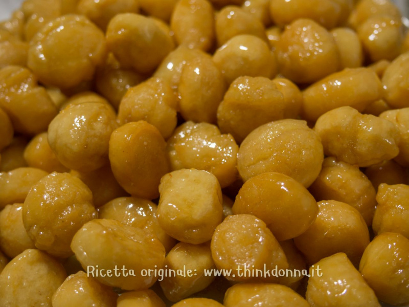 Per la tecnica visiva dei passaggi manuali, puoi consultare questo ► Guida fotografica alla formatura della pignolata - La doratura in padella