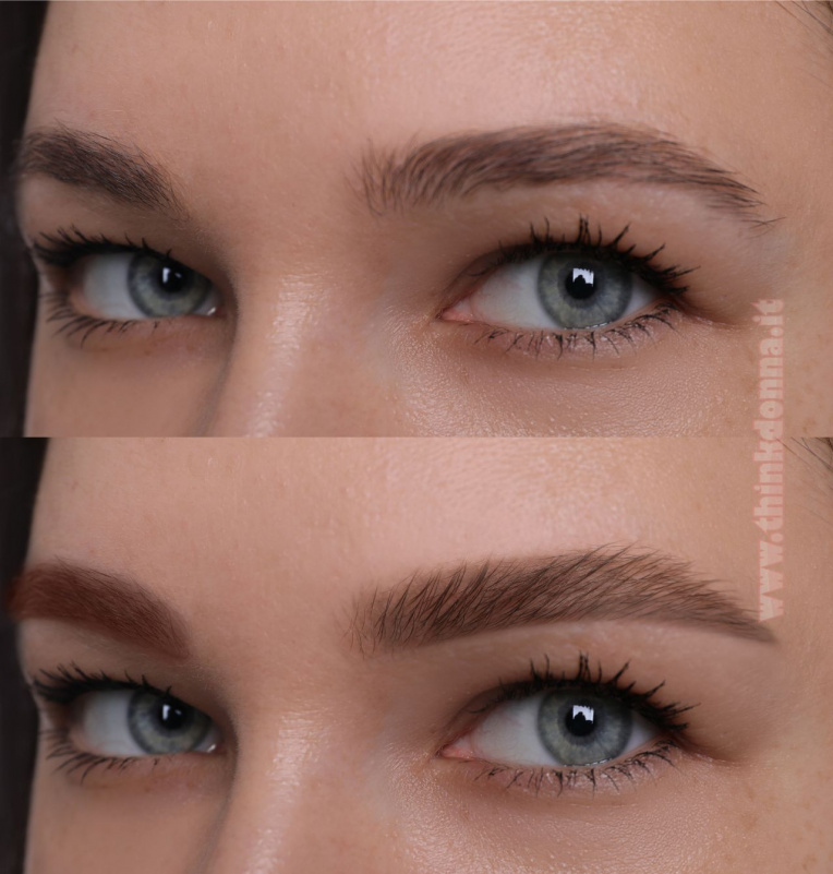 Spesso mi chiedete se sia meglio usare la classica matita o l'ombretto. Nelle foto che vedi qui sotto, puoi notare un ritocco effettuato con la matita per occhi: questa è imbattibile se devi ricostruire piccoli tratti mancanti o definire i bordi in modo netto.