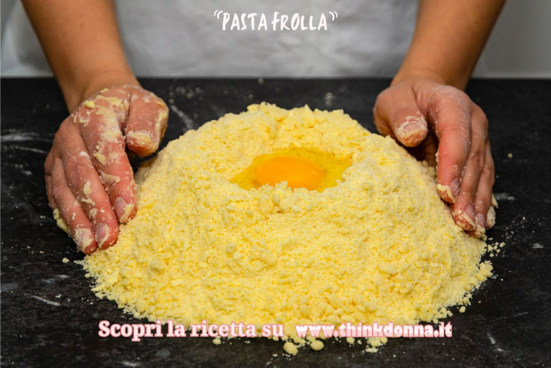 Lavora velocemente con la punta delle dita fino a ottenere un composto bricioloso, simile alla sabbia. - L'impasto: crea un buco al centro e aggiungi l'uovo intero e i due tuorli.